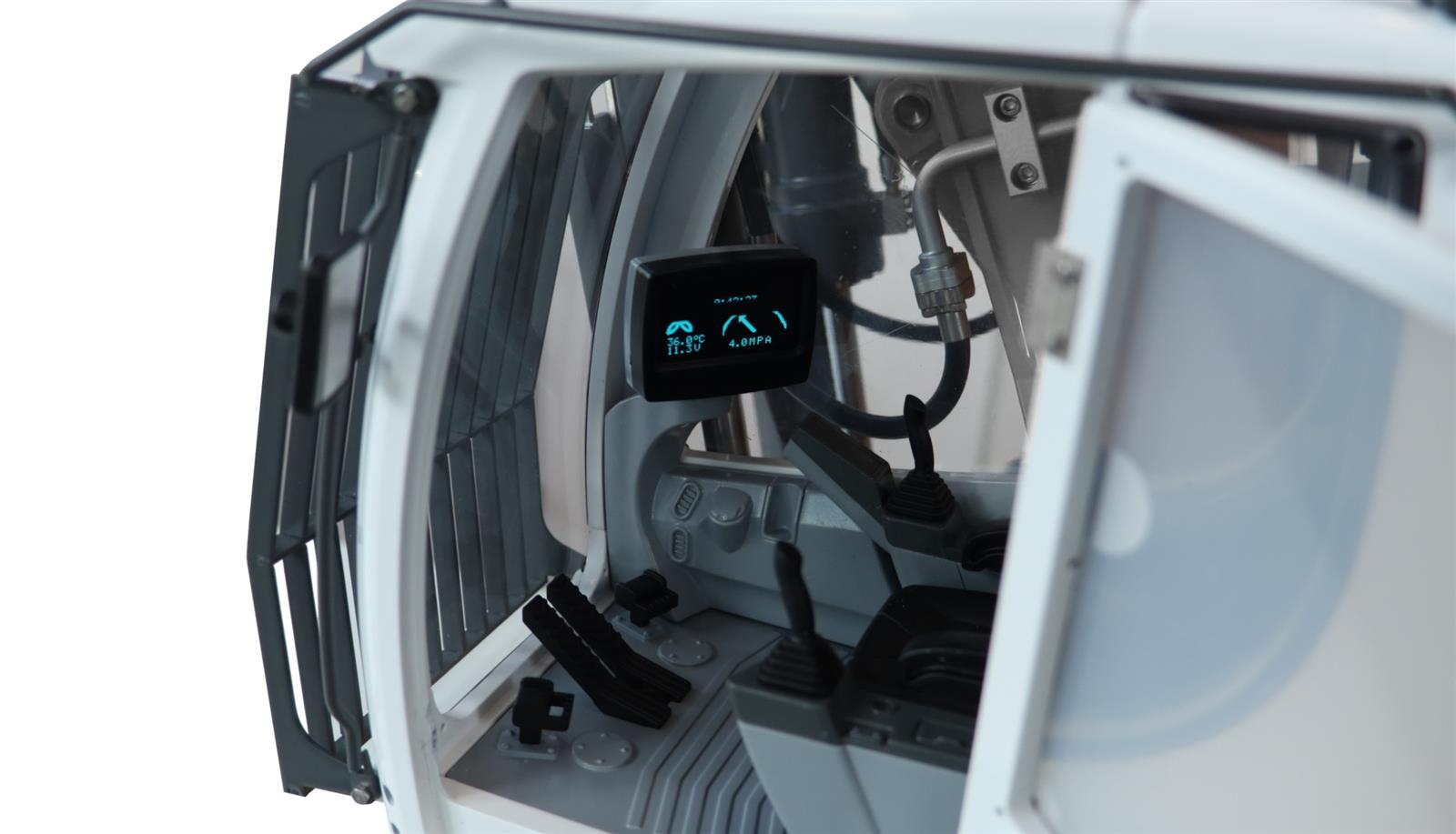 Der K970-200 SME ist ein Steinbruchbagger der Superlative, welcher auf dem Unterwagen des G308H basiert. Dieser Nachbau im Maßstab 1:13,5 steht dem Original, einem 80-Tonner, in nichts nach - alle Funktionen, alle Anbauteile und selbst der Cockpit-Ausbau sind bis ins kleinste Detail dem großen Bruder nachempfunden. In der Kanzel ist sogar ein LC-Display untergebracht, das Echtzeit-Telemetriedaten wie Akkustand, Temperatur, Laufzeit und den aktuellen Arbeitsdruck anzeigt. Letzterer beträgt dabei je nach Arbeitszustand bis zu 33bar.