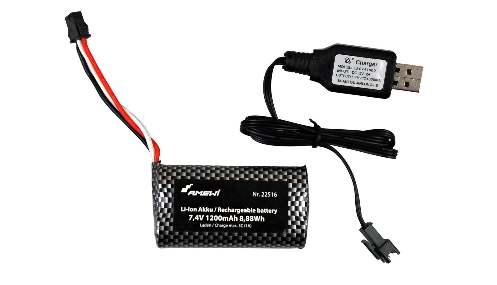 Großer Li-Ion Akku 7,4V 1200mAh mit JST–BEC Anschluss für lange Fahrzeiten
