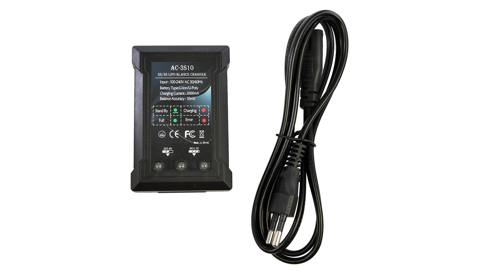 Der starke Akkupack mit 7,4V 3000mAh Lipo 25C ist bereits im Lieferumfang enthalten und wird mit dem beiliegendem 220V LiPo Balance Charger (1A Ladestrom) geladen. Dämpferbrücken, Getriebeverstärkungen und Achsschenkel sind aus hochwertigem in Blau eloxiertem Aluminium hergestellt. Dem Set liegt eine hochwertige 4-Kanal 2,4GHz Pistolenfernbedienung bei, die ein feinfühliges und präzises Steuergefühl bei einer Reichweite von bis zu 150m vermittelt. Für eine optionale Beleuchtung o.ä. bietet der Sender zwei zusätzlich schaltbare Kanäle, Gas/Lenkung sind über den Sender in der Intensität einstellbar (Geschwindigkeit sowie Lenkeinschlag). Weiter verfügt der Sender über zwei Trimmpotis für Gas und Lenkung.