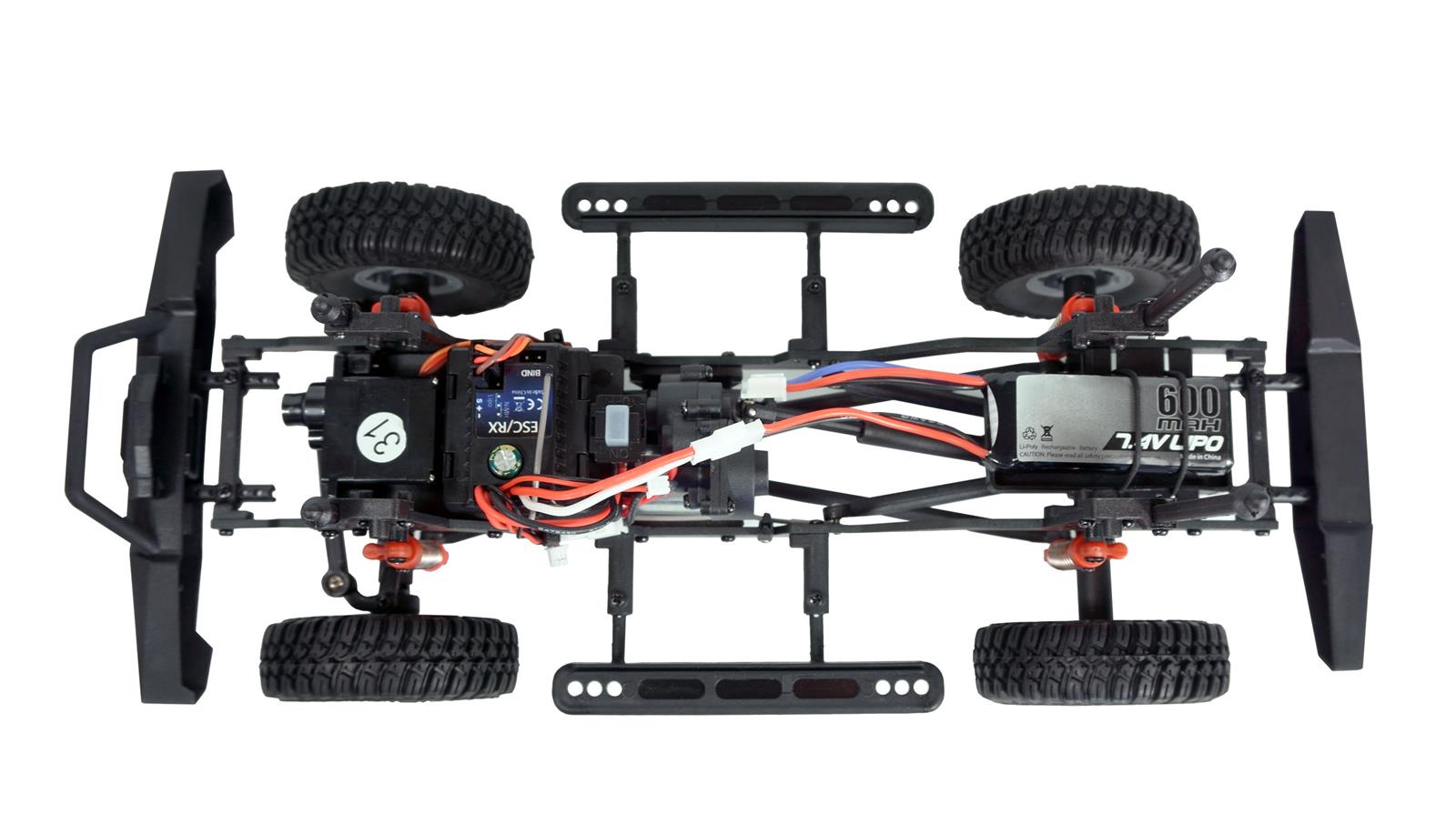 AMX Rock Crawler 1:18 4WDEin toller Semi-Scaler dem durch seine Features der Spagat zwischen Crawler und Cruiser problemlos gelingt. Viele realistische und liebevoll gestaltete Details wie die Scale Karosserie und eine LED Beleuchtung in Verbindung mit dem Multilink Chassis runden das Paket ab. Die extrem weichen M / T Reifen auf Bead Lock warten förmlich auf einen wilden Ausritt über Stock und Stein sowie auf schwierige Schlammpassagen. Die Elektronik ist wassergeschützt untergebracht und erlaubt Fahrten auf jedem Untergrund.Features:104:1FDL High Torque GetriebeMulti Link suspensionDifferential voll gesperrt,Vorder-und Hinterache3 Stufiges Getriebe, Schwerpunkt mittigTeleskopische UJ-Antriebswelle, max. HaltbarkeitLenkservo am Chassis montiertChassis mit Metallrahmen4 WD (Allradantrieb)vollwertige StoßdämpferMountainbrake - kein Abrollen im GeländeSehr feinfühlige Lenkung2,4 GHz Funktechnologie, neueste GenerationLED Beleuchtung vorne und hintenKarosserie mit vielen AnbauteilenBead Lock Felgen mit super weichen M/T Reifen88T 030 Micro MotorESC/RX Combo 2,4GHz3-Fasen Servo 1Kg wasserdichtTechnische Daten:Länge: 263mmBreite: 113mmHöhe: 130mmRadstand: 155mmBodenfreiheit: 34mmGewicht: 280gFelgendurchmesser: 25mmRaddurchmesser: 57mmServo: wassergeschützt 1kg StellkraftESC: Waterproof ESC / RXAkku: 7,4v 2S Li-po 600MAhMotor: Micro 030 88TGetriebe: 104:1Lieferumfang:1x Modell RTR1x Sender 2,4GHz1x Akku Li-Po 600mAh 7,4V1x Ladekabel USBAnleitung DE/ENGWird noch benötigt:Batterien für Sender 4x 1,5V Micro AAA