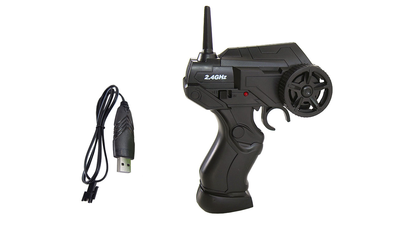 Cooler Desert Buggy im Maßstab 1:24, der Top-Speed mit voller Geländetauglichkeit vereint. So liegt die erreichbare Höchstgeschwindigkeit bei rund 20km/h – dank 4WD-Antrieb, Federung und High-Grip-Gummireifen kann draußen ordentlich Gas gegeben werden, ohne direkt aus der Kurve zu fliegen. Der Spritzwasserschutz gestattet ein komfortables Fahrfeeling auch bei mäßiger Witterung. Mit der gut in der Hand liegenden 2,4GHz Fernsteuerung klappt das Manövrieren feinfühlig sowie kinderleicht. Fahrzeiten von bis zu 14 Minuten, je nach Untergrund und Fahrstil, sorgen für Lust und Laune beim Junior.