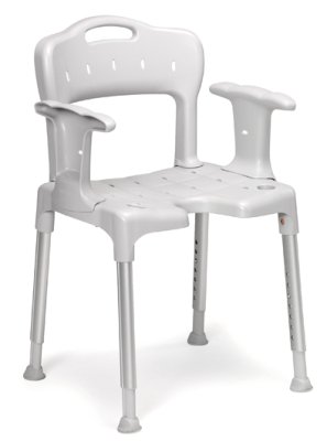 Produktinformationen "Duschstuhl SWIFT mit Armlehnen und Ausschnitt SH44-59cm>>>>Farbe: eisblau"