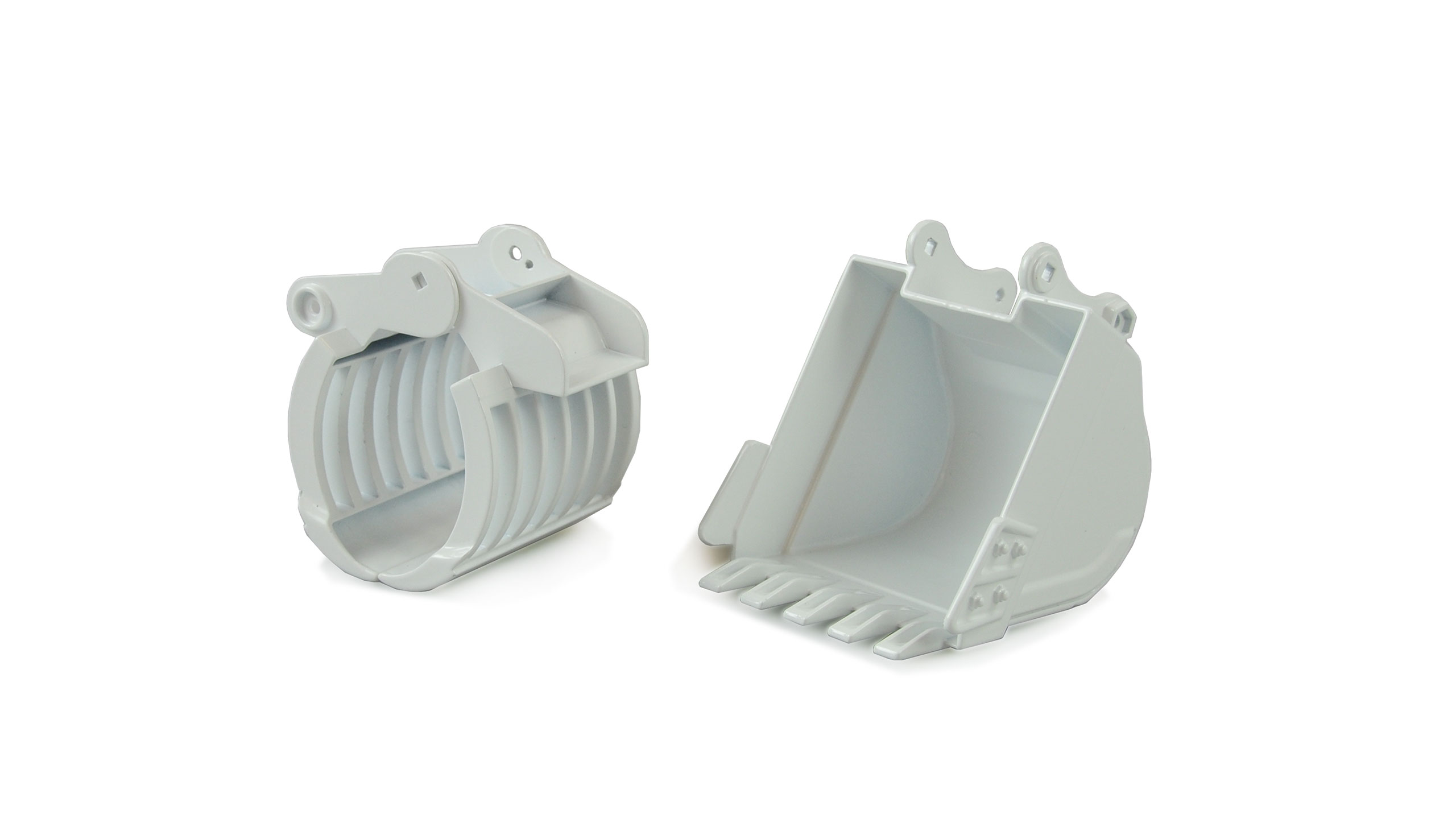 Zusätzlich liegt dem Bagger ein Holzgreifer, ein Bohrhammer und eine zweite kleinere Schaufel aus Metall bei. Somit kann das Modell mit wenigen Handgriffen umgebaut werden. Alle Getriebeteile sind aus Metall und das Modell verfügt zudem über kräftige Stellmotoren, welche auch schwere Lasten problemlos bewältigen. Die Qualität und detailtreue dieses Modells sind bisher als RTR Modell einzigartig.