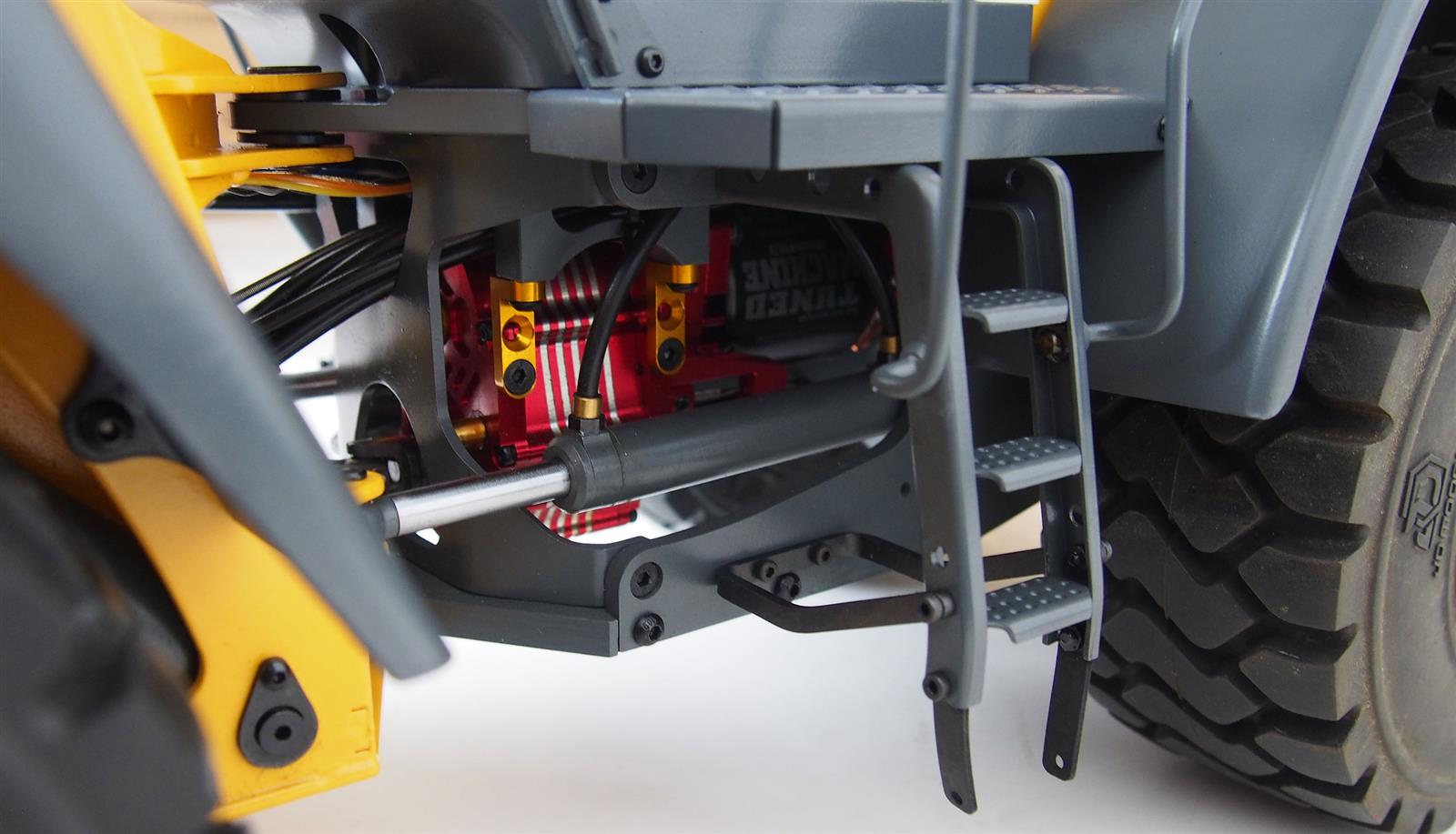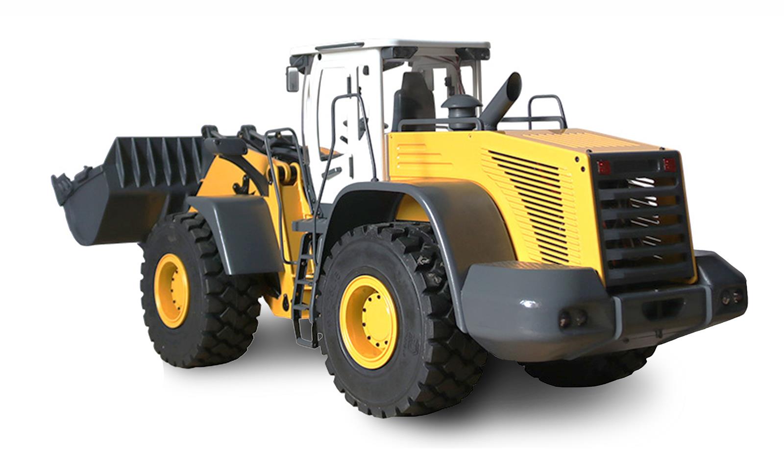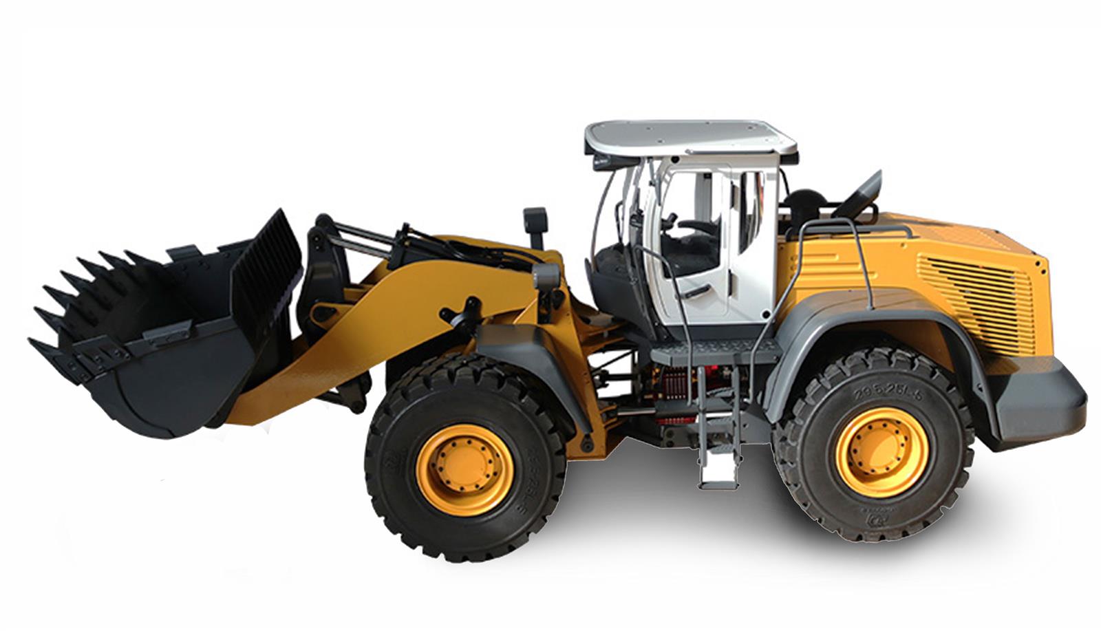 Massiver Vollmetall Hydraulik Radlader im Maßstab 1:14 mit enormen Kräften für feinfühliges Arbeiten auf jedem Untergrund. Das hochwertige Modell kommt nahezu fahrfertig aus der Box und der Zusammenbau beschränkt sich lediglich auf kleinere Verschraubungen, das Auffüllen des Hydrauliköls, das Einlegen des Akkus (nicht im Lieferumfang) und das Einlegen der Batterien (nicht im Lieferumfang) in den Sender. Die hohen Stell und Hebekräfte des Modells in Verbindung mit dem kräftigen Antrieb des Radladers lassen ein Arbeiten auf nahezu jedem Untergrund zu und mit dem 2-Gang Getriebe ist eine hohe Flexibilität des Modells beim Arbeiten garantiert.