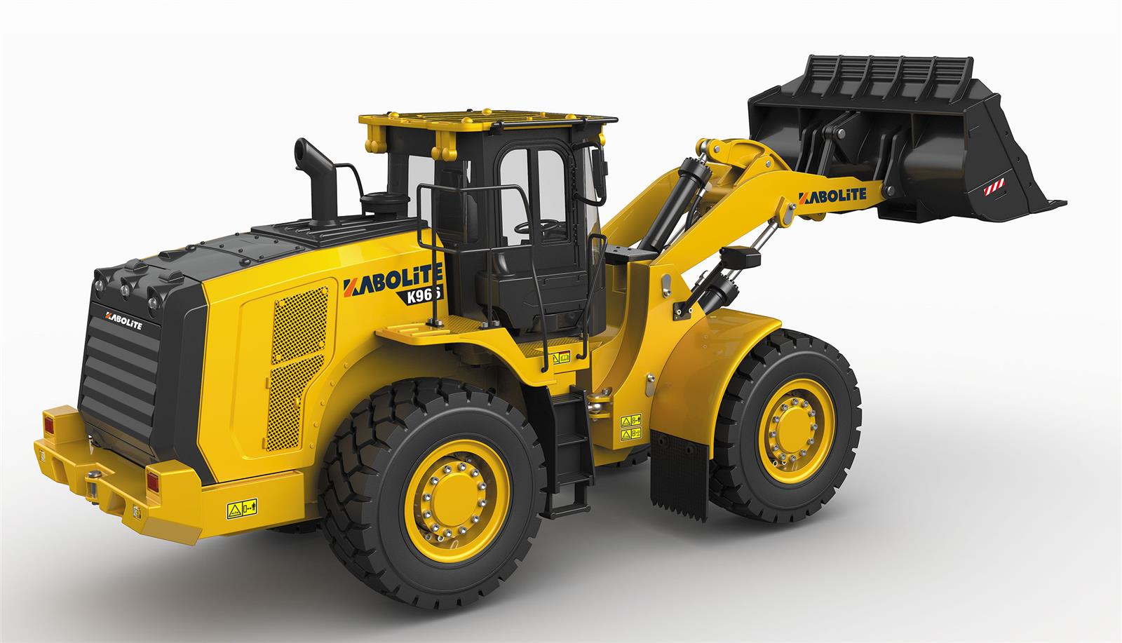 Hydraulik Scale Nachbau eines bekannten Radladers (Modell K966) in Vollmetall mit sperrbaren Differentialen, 2-Gang-Schaltgetriebe und Pendelachse für ein perfektes Fahrerlebnis. Dieser Radlader im Maßstab 1:16 mit einem Gewicht von ca. 11kg in Verbindung mit den High Grip Gummireifen und der sehr schnellen Hydraulik-Knicklenkung lassen den Einsatz auf nahezu jedem Untergrund zu. Die Kraft des Auslegers, des Brushless Antriebes und der Schaufel sind überdurchschnittlich stark im Vergleich zum Eigengewicht und ermöglichen ein problemloses Arbeiten auch mit schwerem Material wie Erde, Kies oder anderem Schüttgut. Insgesamt sind zehn Funktionen über den mitgelieferten hochwertigen 2,4GHz Sender steuerbar.