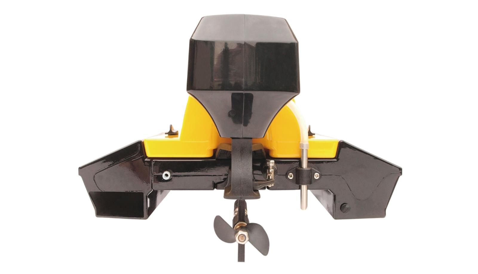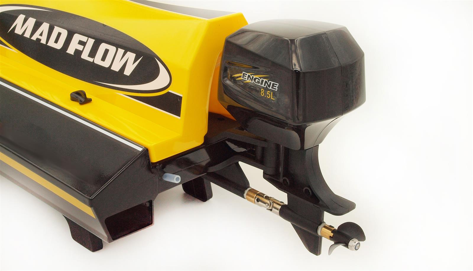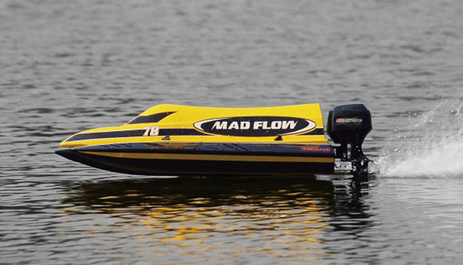 MAD FLOW ARTR Speed BoatEin schnelles und wendiges Katamaran-Boot mitkompakten und handlichen Außenmaßen.Ein kräftiger,wassergekühlter 3S 11,1V brushless AussenläuferMotor beschleunigt das Boot bis auf über 55 km/h.Ein 30A ESC mit BEC Anschluß, ein 9g wasserfestesMetallgetriebe Lenkservo und eine feinfühlige2,4 GHz digital proportionale Fernsteuerungsind weitere Highlights des Mad Flow Speed Boots.Der robuste Rumpf ist Dank eines Flutungskanalsselbstaufrichtend. Daher ist das Boot fürEinsteiger wie auch für Fortgeschrittene geeignet.Technische Daten:Länge: 590mmGewicht leer: 990gRumpf: Kunststoff30A ESCBrushless Außenläufer Motor2.4 GHz 2 Kanal Fernsteuerung9g MetallgetriebeservoAkkustecker: DEANLieferumfang:MAD FLOW brushless Speed Boot2.4 GHz FernsteuerungErsatzpropellerSchiffsständerAnleitung (deutsch)Hinweis:Für den Betrieb wird noch ein Akku mitfolgenden Kriterien benötigt:3S 11.1V 2200mAh mit DEAN SteckerFür die Fernsteuerung werden noch4 x 1,5V AA Mignon Batterien benötigt>>>>GPSR>>>AMEWI Trade GmbH ;Nikolaus-Otto-Str. 18;D - 33178 Borchen;Tel.: +49 5251 288965-0;E-Mail: info@amewi.com ;Web: www.amewi.com