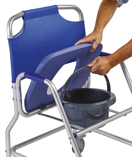 Dank seines bequem gepolsterten Sitzes bietet der rostfreie Obana Dusch- & Toilettenstuhl auf Rädern dem Patienten zusätzlichen Komfort. Toiletteneimer und abnehmbarer Sitz machen es einfach, diesen als Toilettenstuhl zu verwenden.