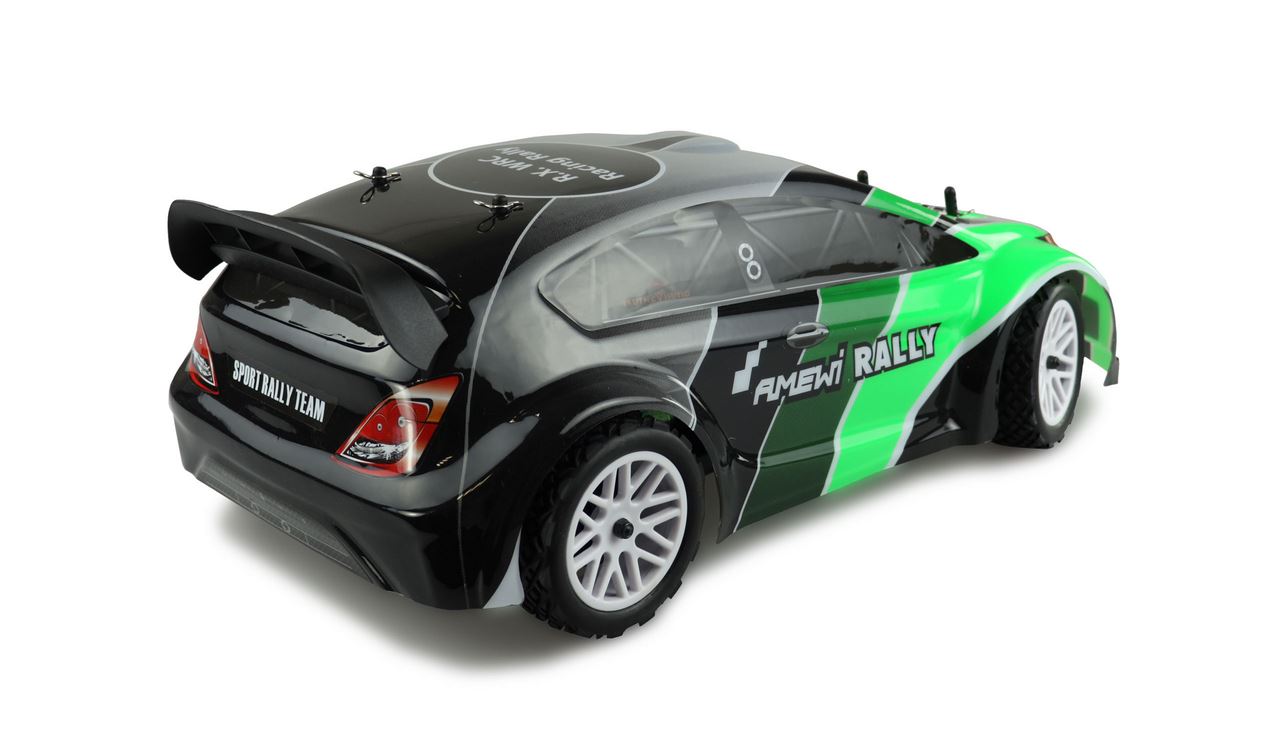 AMX Racing 1:10 WRC Rally Fahrzeug in sehr hoher Qualität! Dank des bewährten Aufbaus des Chassis und der sehr guten Öldruckstoßdämpfer in Verbindung mit dem voll einstellbaren Fahrwerk sorgen für höchste Performance auf jedem Untergrund! Egal ob Straße oder Schotter, der X.R. WRC von Amewi sorgt für enormen Fahrspaß und Kontrolle in allen Lagen! Die erreichbare Geschwindigkeit liegt out of the Box bei ca. 35 km/h. Der Aufbau ist so ausgelegt, dass jederzeit ein Aufrüsten auf z.B. unsere 1:10 Brushless Sets möglich ist. Getriebe und Fahrwerk sind zum Aufrüsten ausgelegt und Geschwindigkeiten von über 70 km/h sind dann problemlos möglich! Lassen Sie sich von der Optik und der Performance dieses außergewöhnlichen 1:10 WRC RTR Fahrzeug überzeugen, sie werden begeistert sein. Dank der Spritzwasser geschützten Elektronik, ist auch ein Fahren abseits der Straße kein Problem.